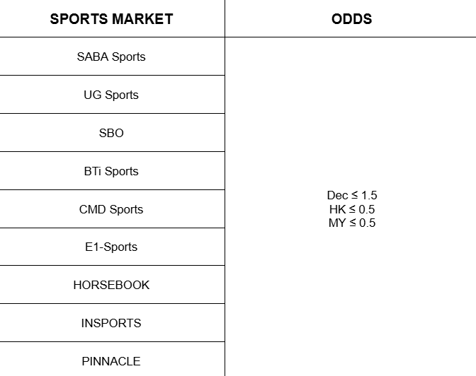 For sport market, We will not calculate the bonus wagering and turnover stated on the table: