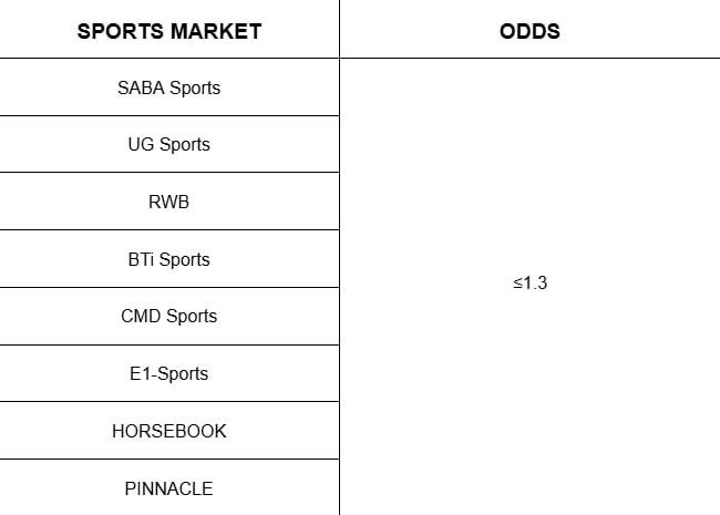 For sport market, We will not calculate the bonus wagering and turnover stated on the table: